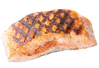 Descripción: filetes de salmón marinados en salsa teriyaki y luego cocidos, con una cama de vegetales frescos aderezados.
