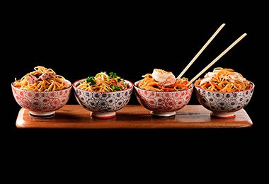 Conviértete en un experto de la comida china preparando en casa estas recetas de arroz cantones, stir fry de lomo con bok choy, pollo con verduras chinas, wok de pasta y ensalada de won-tongs de guayaba con salsa de frutas.